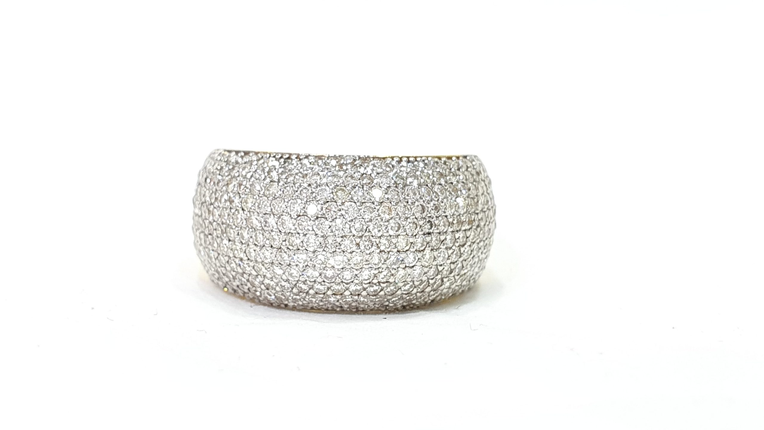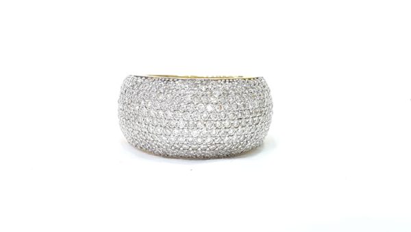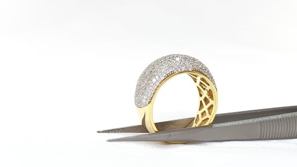 Entirely Hand Set And Hand Assembled, This Beautiful Dome Shaped Ring Features An 18K Yellow Gold Base, With Micro-Pave Style of Hand Set Diamonds Weight 1.80 Cts. The Perfect Gift For Any Occasion. This Fabulous Ring 18Kt Gold Pave Diamond Fashion Ring Can Be Used As A Unique Diamond Wedding Band And Showcases Sparkling Genuine Pave Set Round Diamonds. Featuring An Elegant Design. Statement Jewelry Collections This Luxurious Pave Diamond Ring Wide Wedding Band or Pinky Ring is A Really Wide Ring .