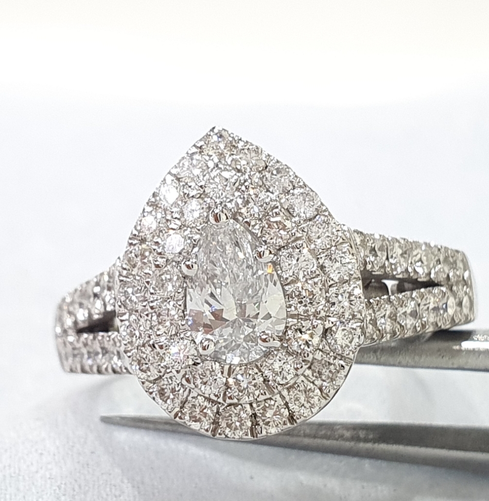 Be the first to review “PEAR SHAPE DOUBLE HALO ENGAGEMENT RING SETTING 18K WHITE GOLD”